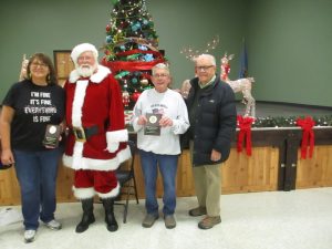 In spite of having to cancel wagon rides due to a horse virus, a snowstorm dumping several inches of snow, and a strong northwest wind, the cook-off and tree lighting were attended by about 100 people. The event raised $496 towards helping needy families with heating bills.