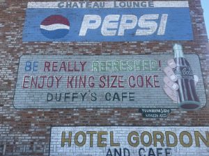 Last spring the Downtown Committee decided to invest in restoring “ghost murals” on a couple of the Deadwood Street historic buildings, specifically the old Gordon Hotel (Chateau Lounge) and Rowe Hardware. Artist Jill Kokesh was hired for artwork on the Chateau and an additional grant was procured from Fort Pierre Tourism to complete the project during the hottest days of summer.
